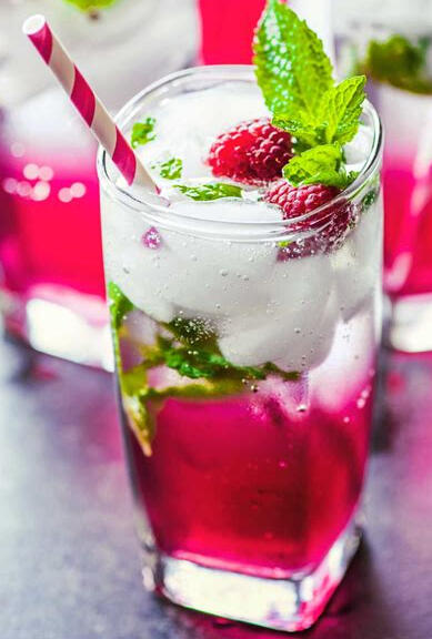 Garnished with mint sprig and